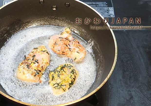 ▼のりたま・味道楽・たらこふりかけ「鶏むね肉のピカタ」の作り方
