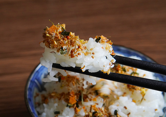 素材としてかつお削りぶしや昆布を使用しており、旨味があり飽きのこないふりかけに仕上げました。