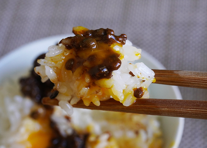 旨味が非常に濃密なので、シンプルにご飯にのせるのはもちろん、卵かけご飯(TKG)でいただくのもおすすめです。