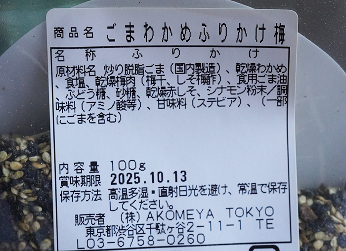こちらはごまとわかめの他に、梅が入ったタイプ。梅の爽やかな風味が食欲をそそります。