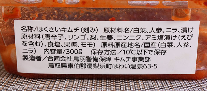 製造元:鳥羽警備保障 キムチ事業部