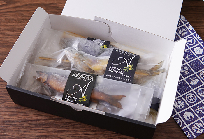 秋田県湯沢市で鮎の養殖と鮎料理を提供するお食事処を運営する「鮎乃家」のギフトセット。