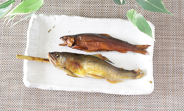 自宅で温めるだけで楽しめる「鮎の塩焼き」や「鮎の燻製」。 お酒のおつまみやプラス1品にもってこいの「小鮎のマリネ」「小鮎の甘露煮」。