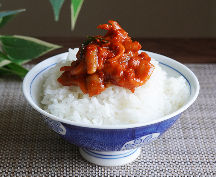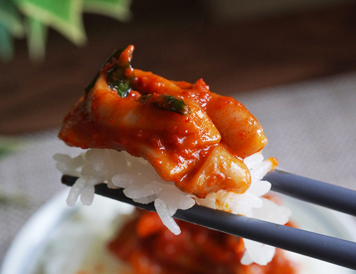 前回は定番の「白菜キムチ」を紹介しましたが、今回は姉妹商品の「イカ」です!