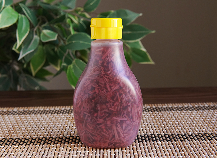 赤しその味わいと爽やか酸味を感じる、ふりかけで有名な三島食品の「ゆかり®」を使用したなめ茸です。