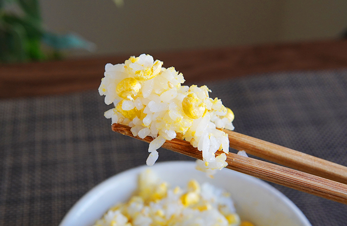 ご飯に混ぜこんで食べると、手軽に「とうもろこしの炊き込みご飯」を楽しめますよ。
