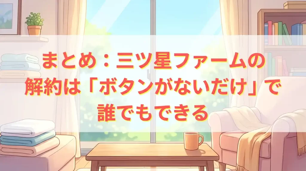 まとめ:三ツ星ファームの解約は「ボタンがないだけ」で誰でもできる