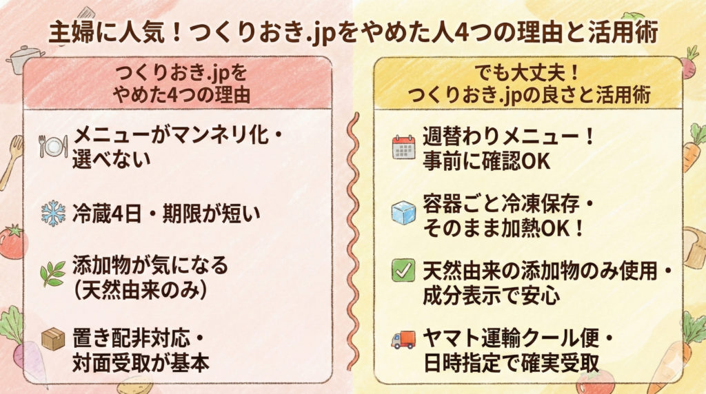 やめた理由の多くは「消費期限内に食べきれない」「置き配ができない」など、生活スタイルとの相性でした。
